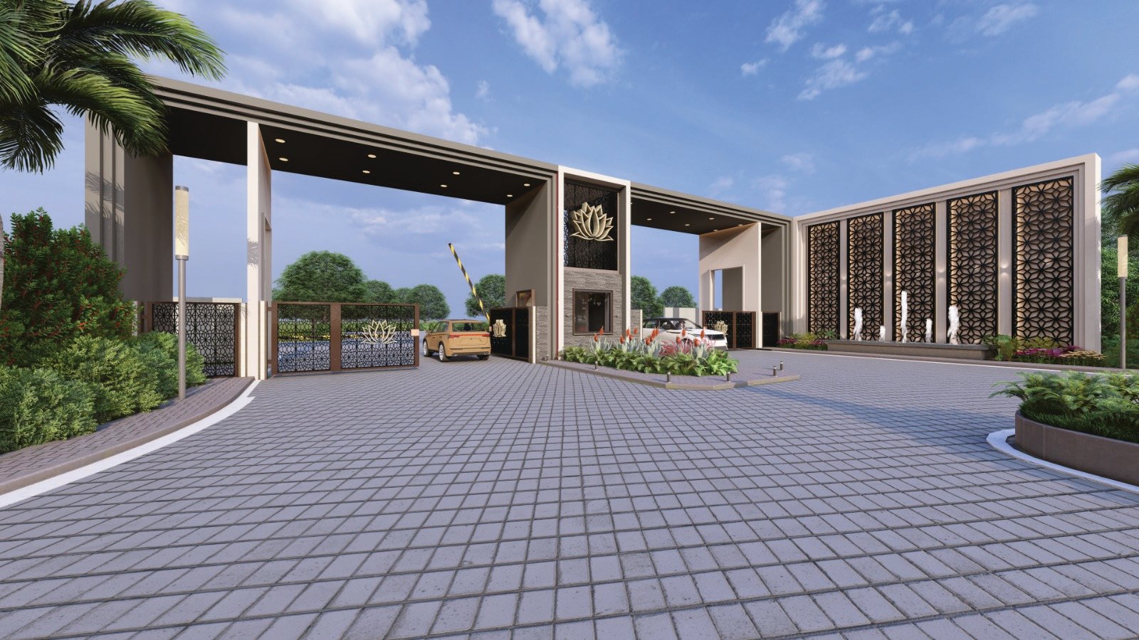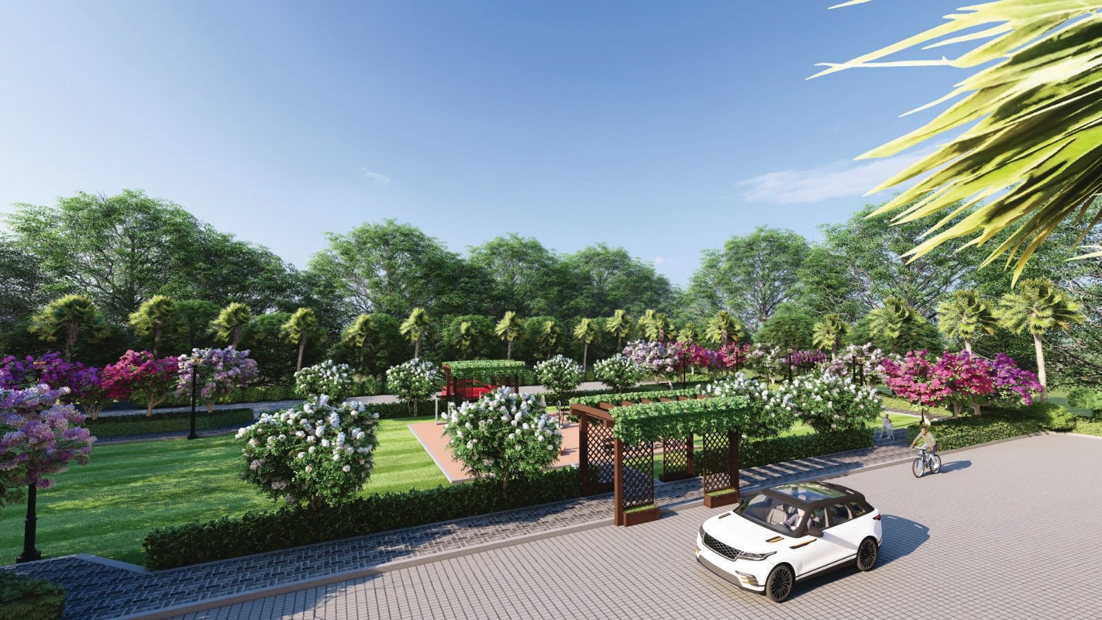• Greenery on Both Sides of Road – Beautiful landscaping surrounding the community.